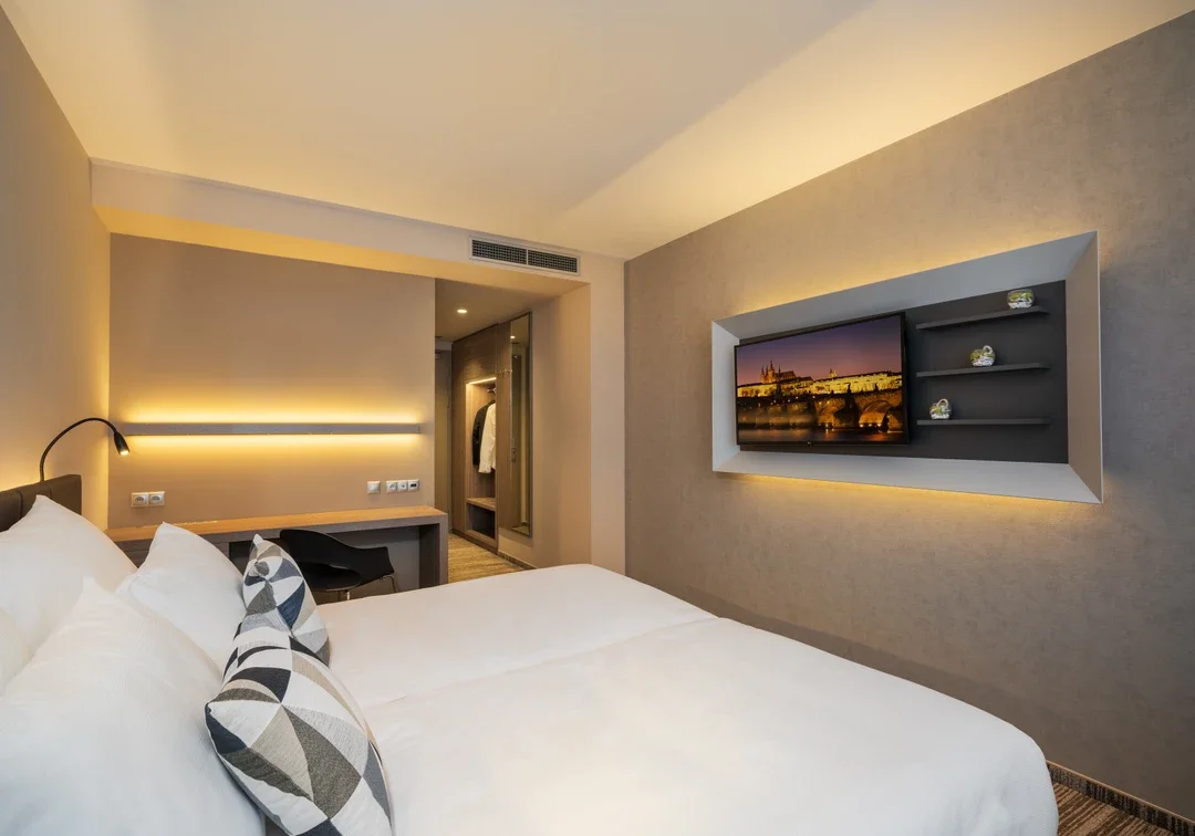 Hotel CUBE enjoys a privileged location in the heart of Prague, surrounded by the city’s most significant cultural and architectural landmarks. The National Theatre, Žofín Palace, the Dancing House, and the Mánes Exhibition Hall are all within immediate proximity. Old Town Square with the Astronomical Clock, Charles Bridge, Wenceslas Square, Národní třída, and the Vltava riverbanks are all easily reached on foot.